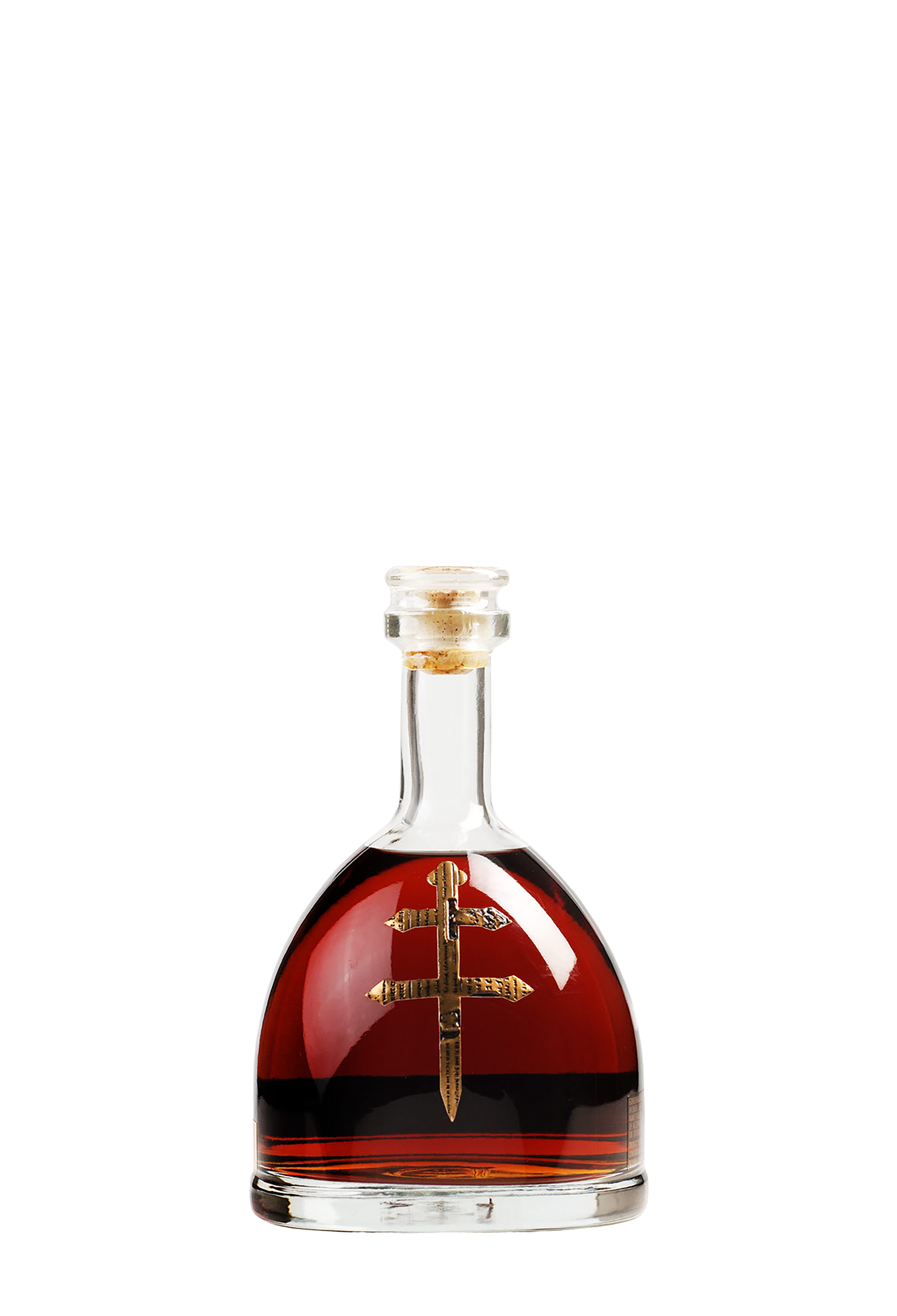 The Dusse VSOP bottle is a vision of purity and elegance. Its transparent body reveals the warm, inviting tones of the VSOP cognac, aged to develop a balanced and refined flavor profile. The bottle's round, bulbous shape is both contemporary and timeless, crowned with a clear stopper that mirrors the bottle’s clarity.