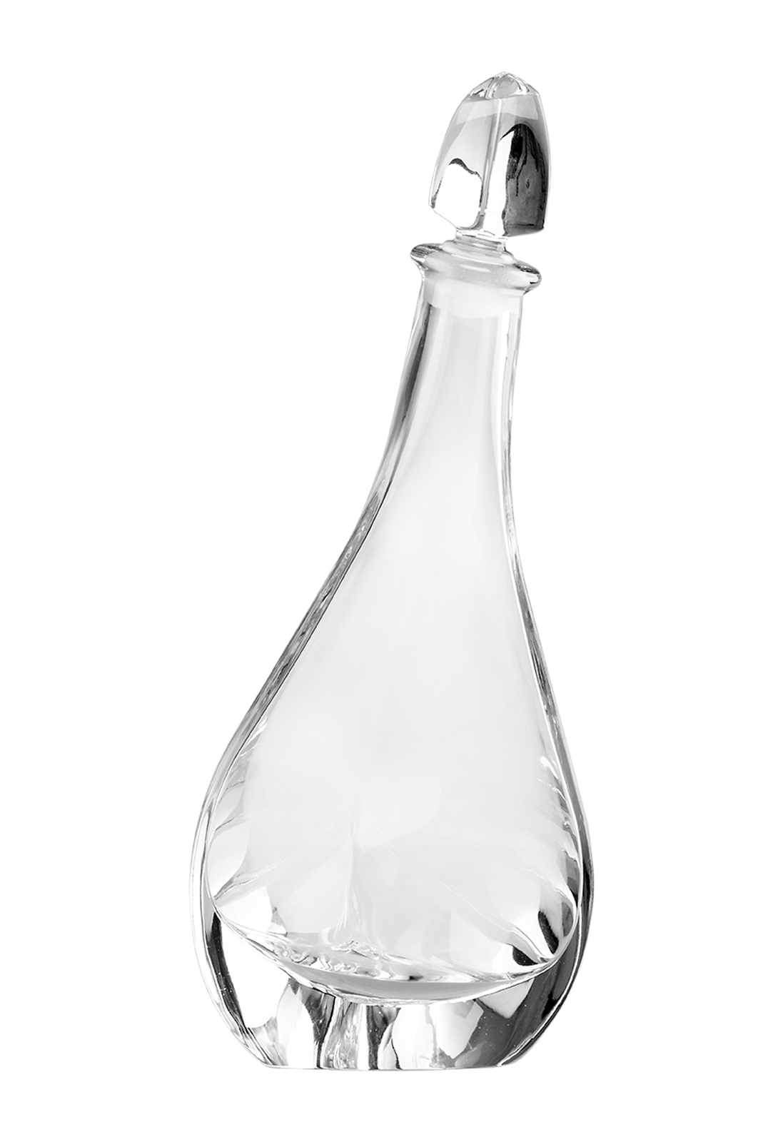 The Robin presents a sleek, sophisticated silhouette with a slightly tilted form and three-sided profile that adds depth and character to any setting. The stopper, mirroring the bottle's design with three identical sides, complements perfectly its overall look. Its crystal-clear glass elegantly displays the deep amber tones of your cherished spirits.